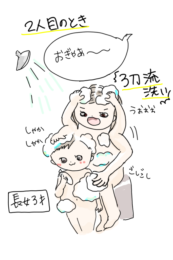 お風呂のときに、長女が末っ子を抱いてくれ、両手で自分の体を洗えていることにびっくり。
