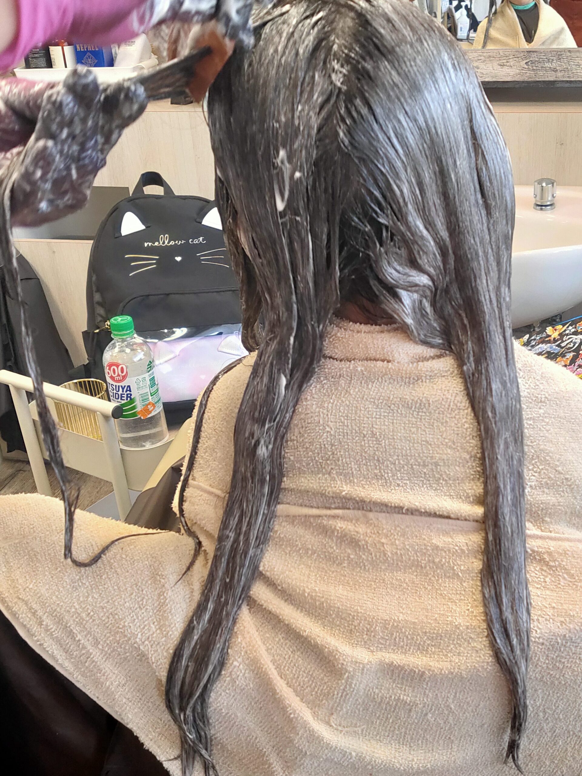 ドキドキしながら始まった施術ですが、優しく話しかけてくれる美容師さんに、終始リラックスモードの娘。